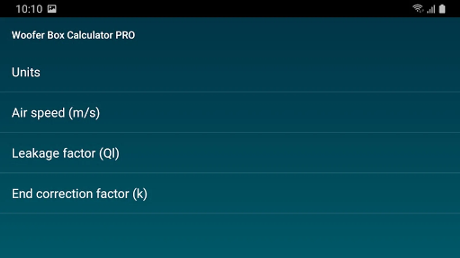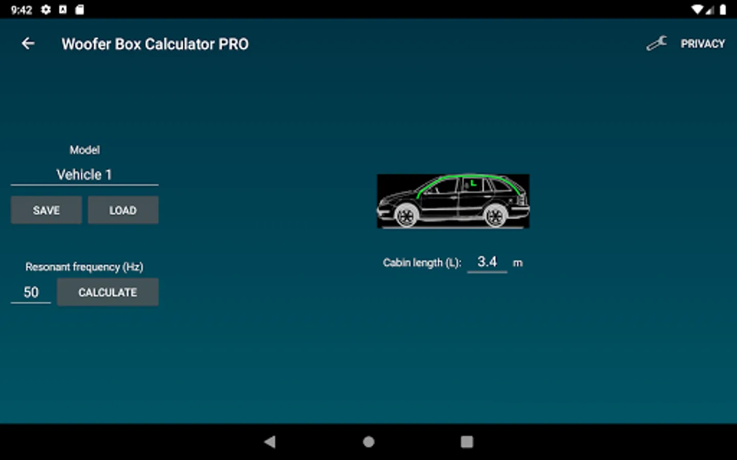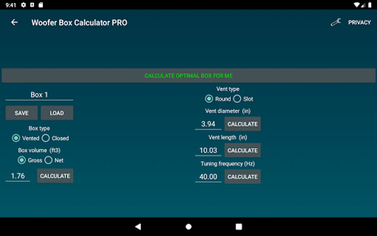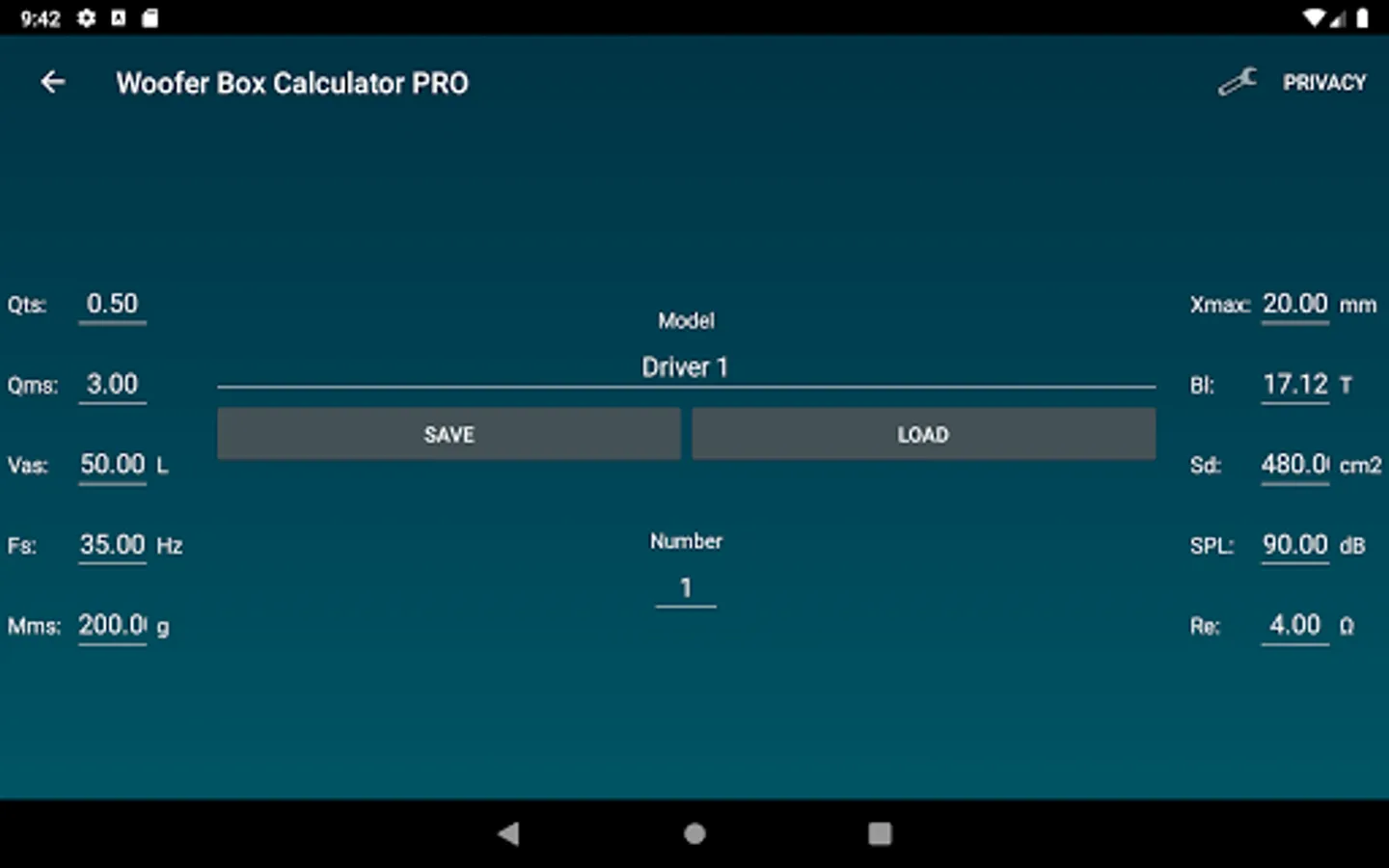 Design projects can easily be saved and loaded. Enclosures, speakers and Vehicles can also be saved and loaded separately. Units an constraints can be changed under settings.
