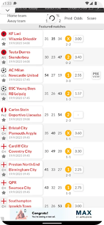 In addition, we offer daily betting tips for the different types of options available in the app:
