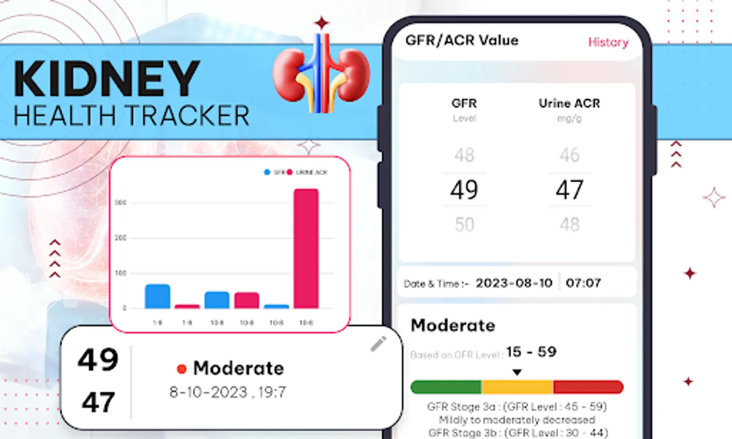 🍀 Kidney Health Tools: Maintain kidney health with our in-depth tracking tools. From GFR levels to Urine ACR(mg/g) levels, our app provides comprehensive insights into kidney function.