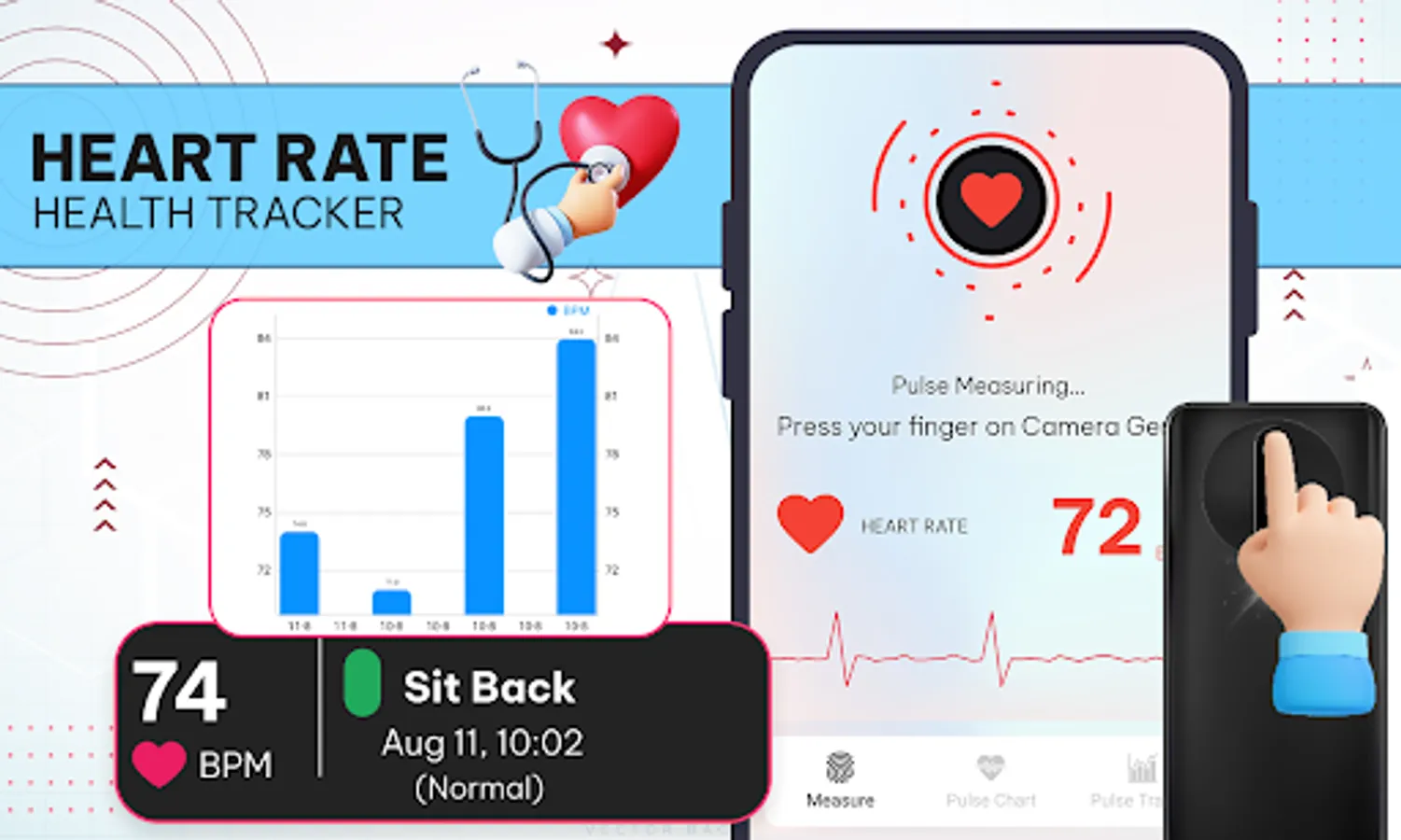 Health Tracker Hub goes beyond monitoring – it's your dedicated health assistant. With user-friendly navigation, you can effortlessly track heart rate and pulse by placing your fingertip on the camera, ensuring accurate readings without additional devices.