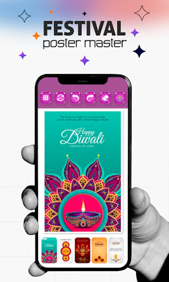 1. Festival post & Banner, Festival wishes with name and photo, Festival quotes, Festival Video ad with the song & greeting card, Motivational & inspirational quotes & Video status, God Quotes & Status, Animated Birthdays Slideshow Wish With Video & Song, Offer Maker Poster, Personal Wish Poster With Photo On a special Occasions Like Diwali & New Year, Political Festival Post