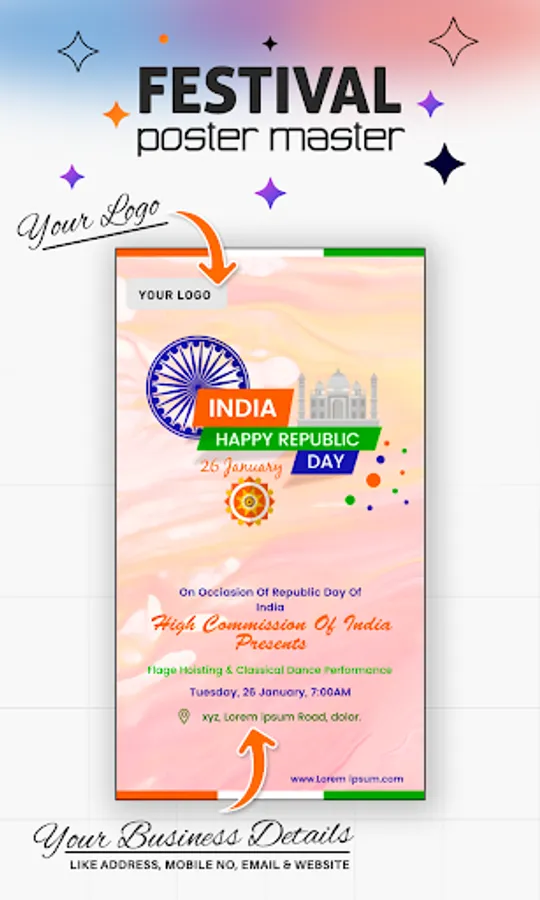 4. The Festival Poster Master & Flyer App also allows you to create Stunning Festival Posters, Video Status, flyers & social media graphics.