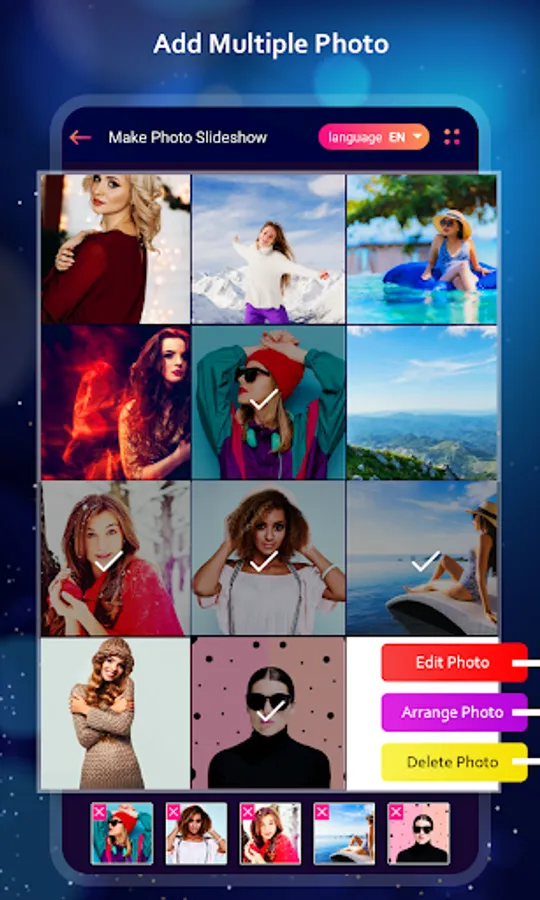 Video maker with photos & music is a powerful video Editing tool to create video from photos and music with an extremely diverse and unique photo library, sound effects, overlay effects, frames. Free video maker with music and photos, pro video combiner app, merge photos to create slideshow with music.