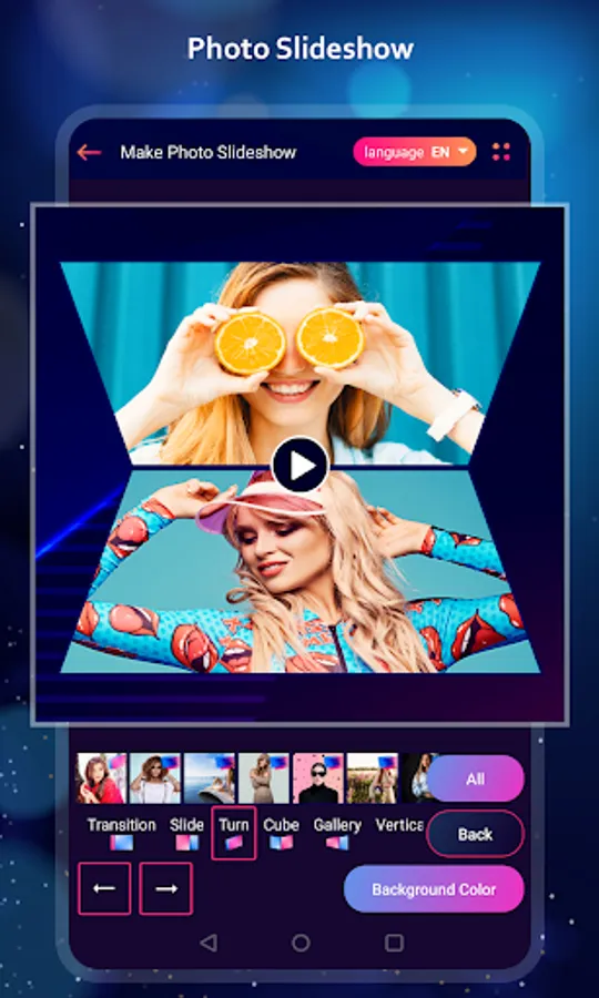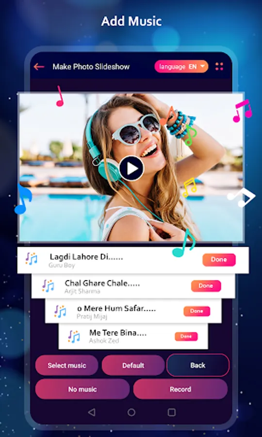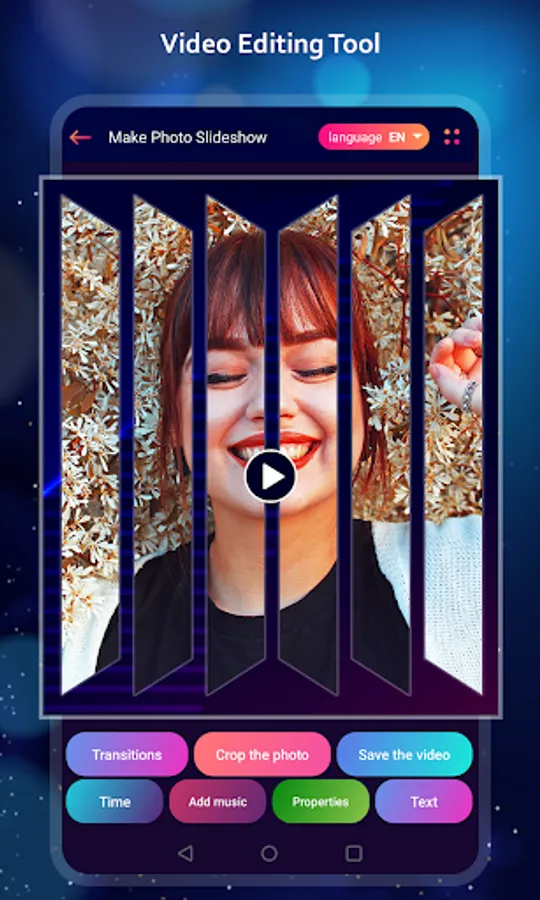 Slide Show Maker has vibrant, colourful, magic, huge music tone and shimmering video templates. Easily create for your Fullscreen Video many beautiful and attractive Good Morning & Night Wishes, Birthday, Love Videos, Wedding Anniversary, Good Friday, Mother Day, Friendship Day,Cute Video, Spark Video Effect, Video Quotes, Video Master and other magical special effect video templates. Make video status with a large collection of best Status Video Songs including festivals and share your video for VidStatus, Snack Video, Facebook, Instagram, WhatsApp, Youtube story status.