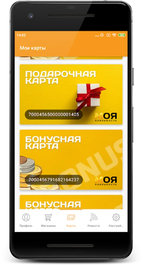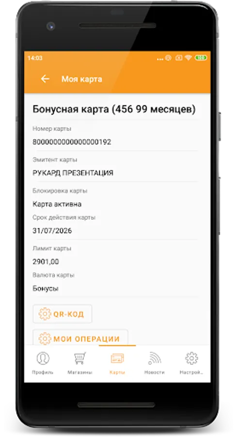 • choosing a particular loyalty card from the list, you can use its virtual counterpart - QR code - for presentation at the cashier in the Partner’s store. You will be served as if you presented a plastic card