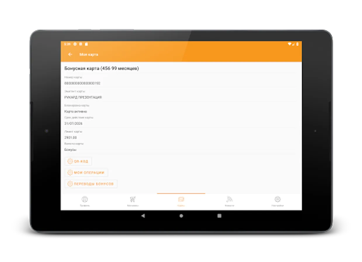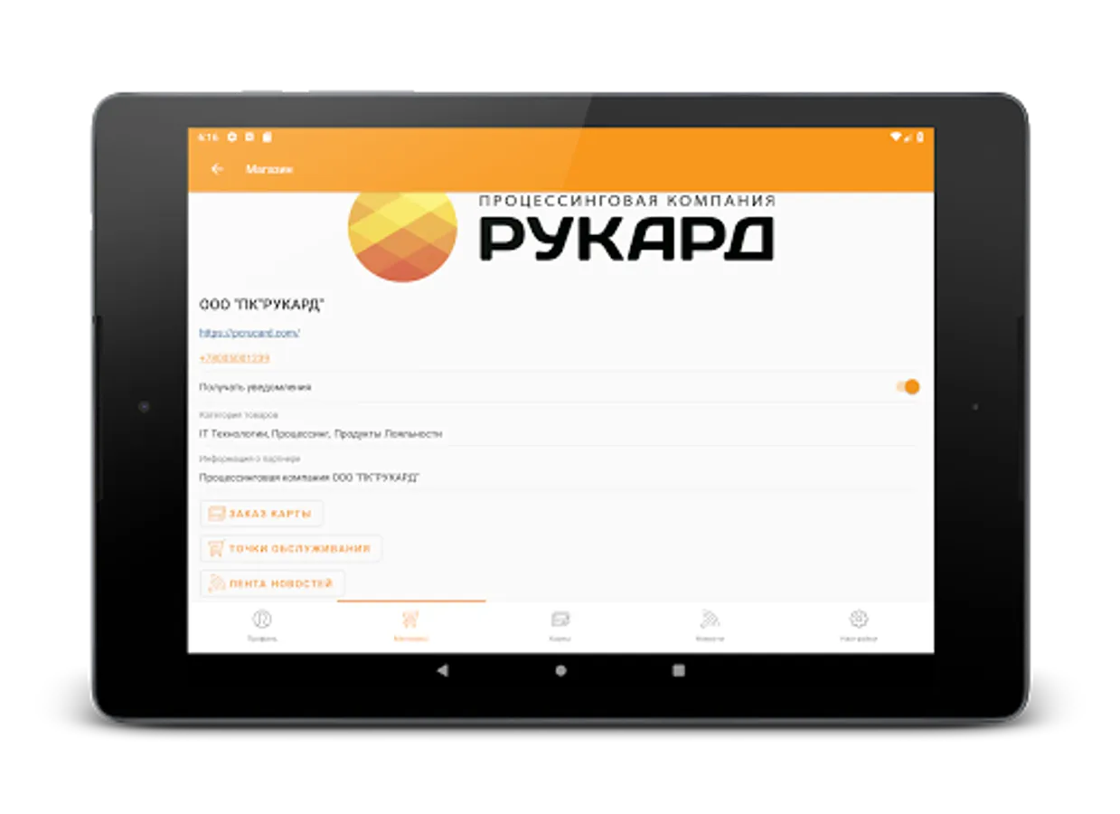 • if you are a member of the loyalty program of PK RUCARD Partners, in the “My Cards” section of the application, maps of these programs will be displayed associated with your account