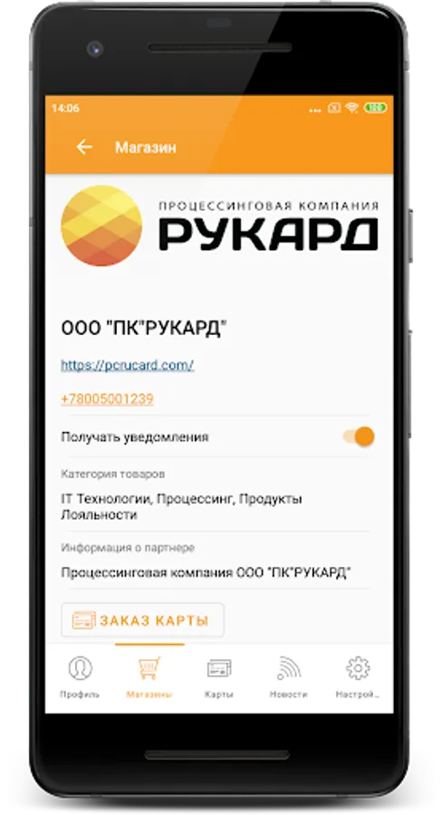 • if you do not have a card of our Partner yet - release it directly in the application and use it when servicing the store. Conveniently.
