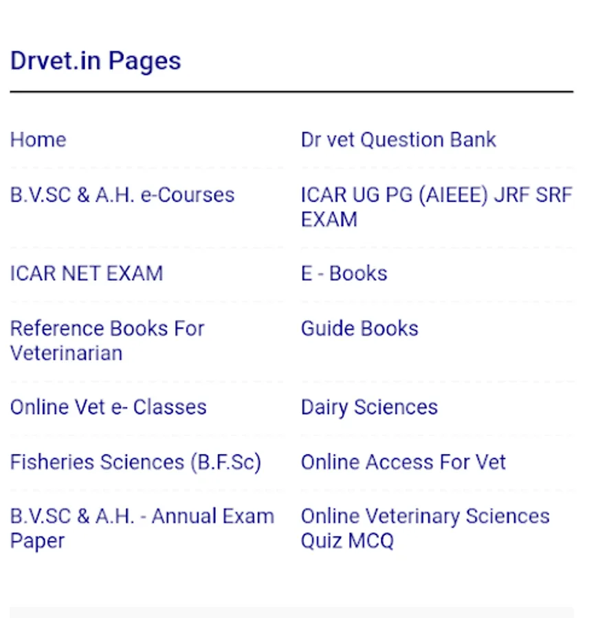 Welcome You To Online One Stop For Vet & Pet Lovers - Dr. Vet App Is Created by Veterinarians To Connect World veterinarians & Share Veterinary Related materials i.e. Veterinary & Animal sci.(DVM, B.V.Sc & A.H, M.V.Sc, Ph.D) e-books PDF, Conduct Online Quiz For ICAR & STATE PSC EXAM, IAS IPS Notes For Vet, ICAR Exam Notes For PG & Net Exam & Latest Jobs Information.