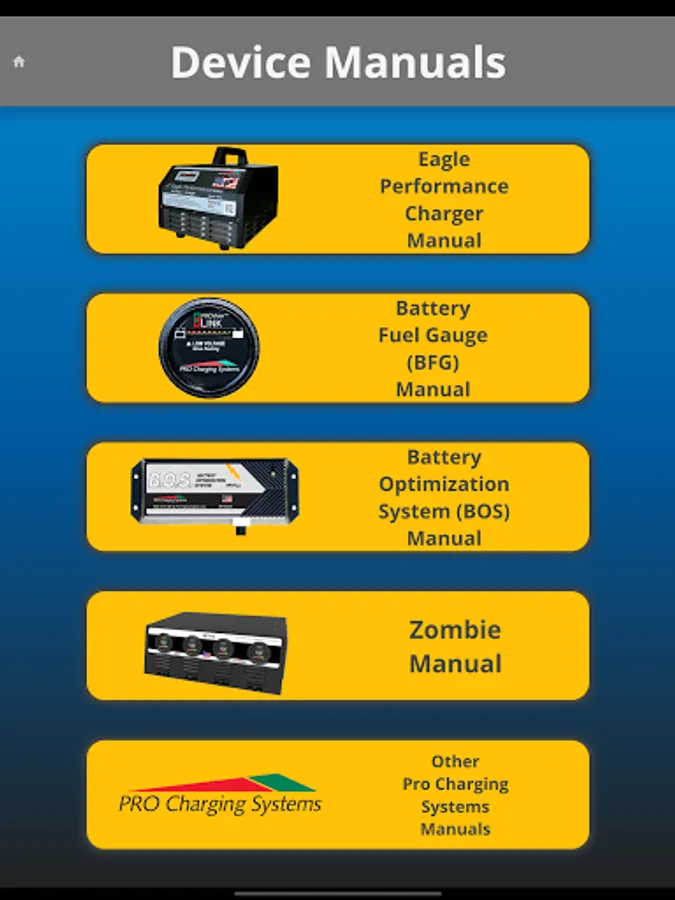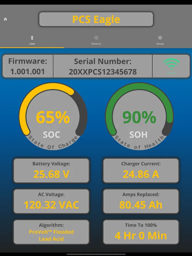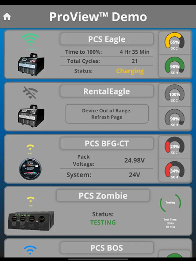 Pro Charging Systems, LLC (PCS) new revolutionary PROView Link® (PVL) allows you to monitor your PCS wireless enabled device(s) from your mobile device(s). Wireless connectivity provides a convenient and functional way to access pertinent information directly to your smart phone or tablet such as current state of charge.
