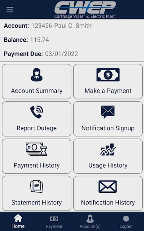 Allows customers to access their information