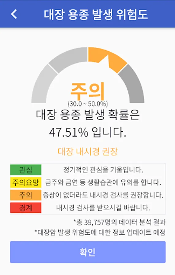 -The cancer / polyp occurrence prediction algorithm of the large intestine will be provided to the user by predicting the risk of cancer / polyp in the colon according to the user's lifestyle tendency.