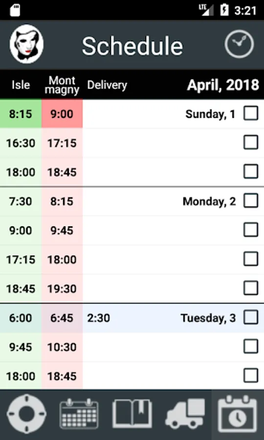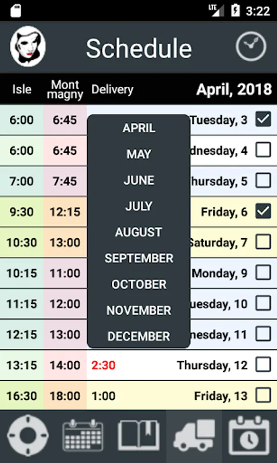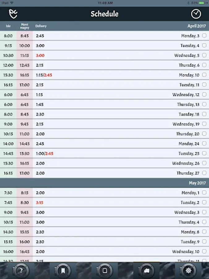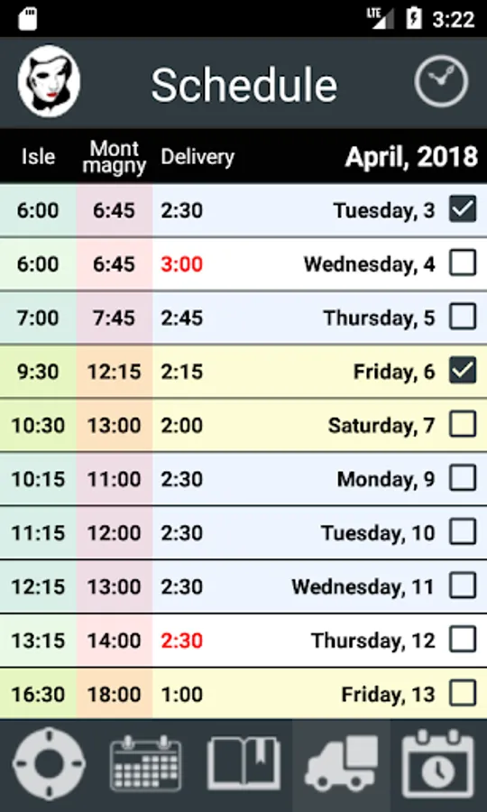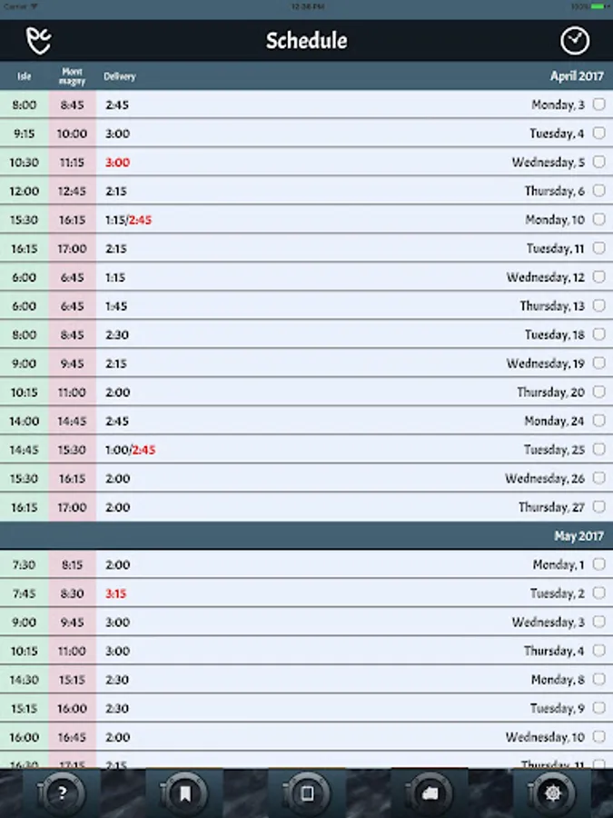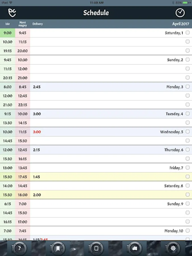 Ferry schedule of Isle-aux-Grues with bookmarks and special delivery dates.