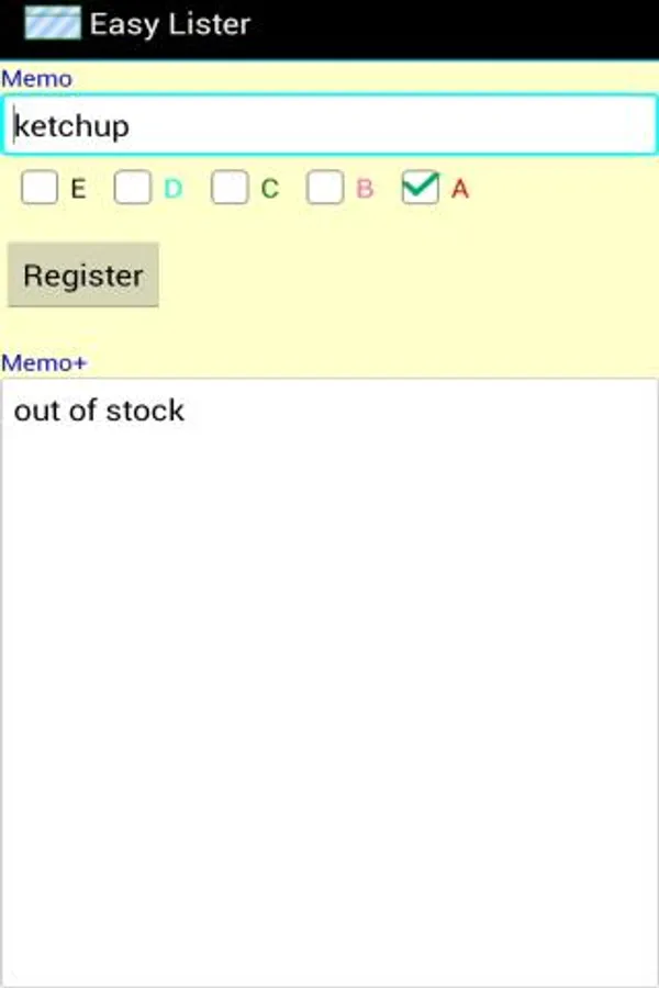 This is a very simple memo list app. Please use for shopping list,task list and so on. This list is ordered by 5 color levels(white, light blue,green,pink and red). You can use 5 lists(for example, for shopping, work and others as you like).