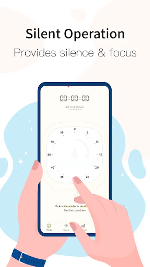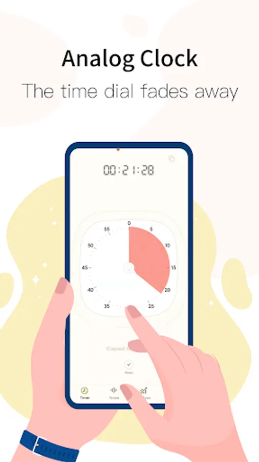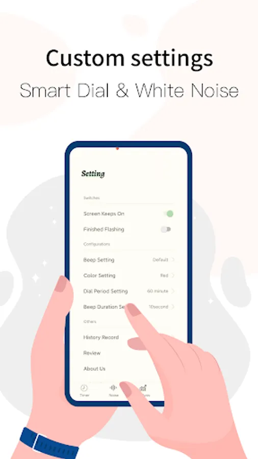 Custom settings-selection of notification sounds, dial color, white noise mode.