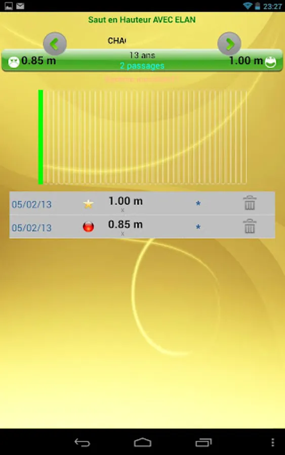 -> For example EPS: the tasks of organizing events and performance measurement (as recommended in the official texts of the DNB in 2012 for the jump) are delegated to the students easily grasp the results jumps according to the type of momentum, and with each performance, a score assigned according to age and sex on the basis of scales created automatically by the application based on field performance.