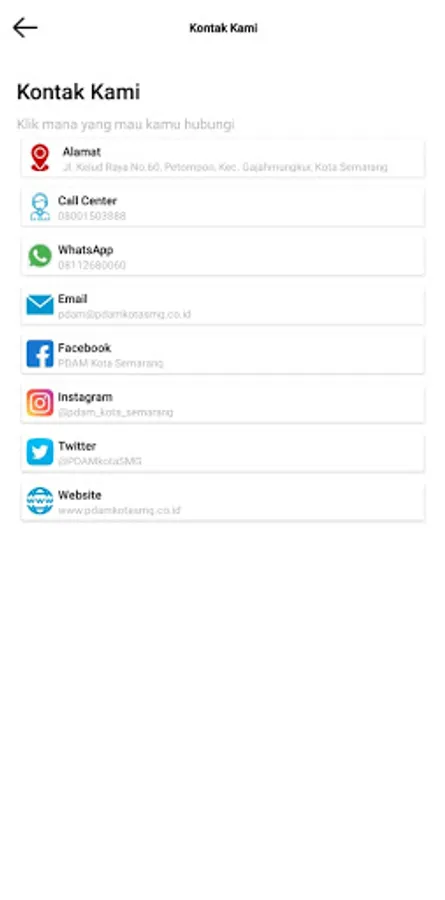 This application is intended for people who want to make a complaint to PDAM Semarang City regarding the problems they have. Starting from leaking pipes, meter problems, cloudy water, etc. This application is continuously updated to make it easier for the public to access information and services from PDAM Semarang City