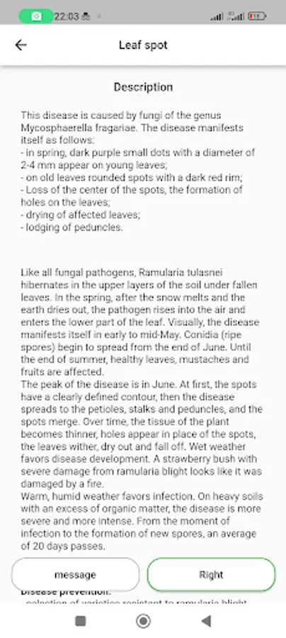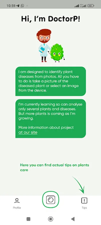 To check your plant just make a photo of it or select a photo from a device. An advanced neural network trained on a real-life dataset will make a prediction and give description, examples, and advice on treatment.