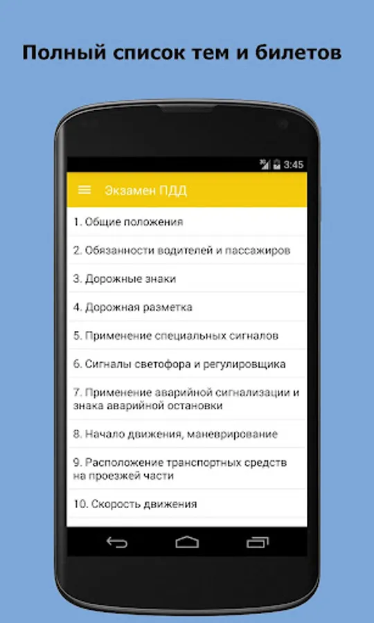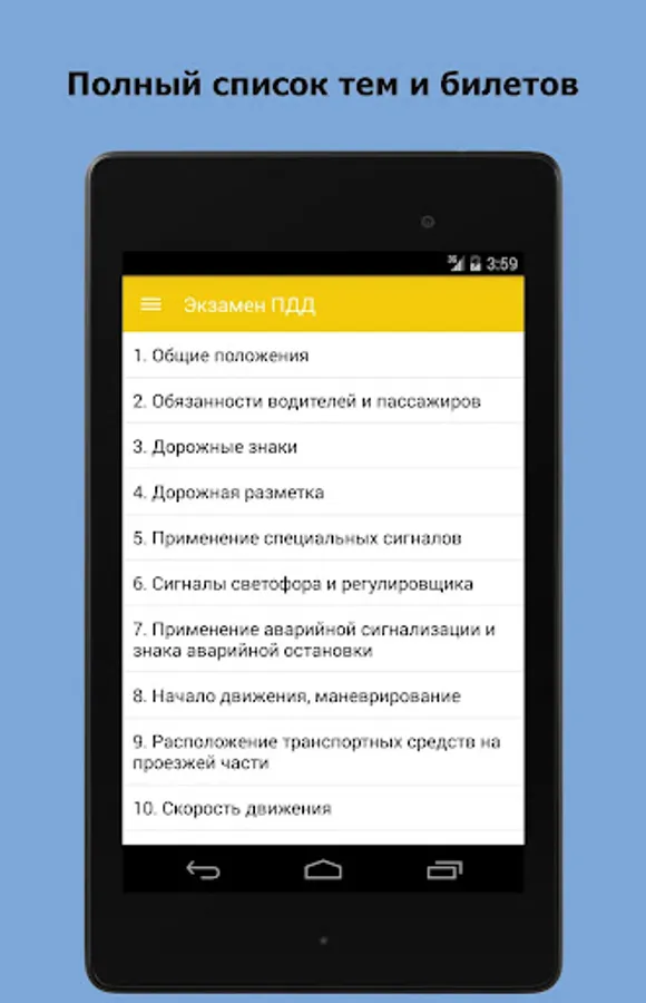 Application "on exam SDA traffic tickets - RF 2018 Thematic Tickets Examination tickets" can be useful, and those who were tested, but have the desire to restore their knowledge and become familiar with the current changes in the rules of the road.