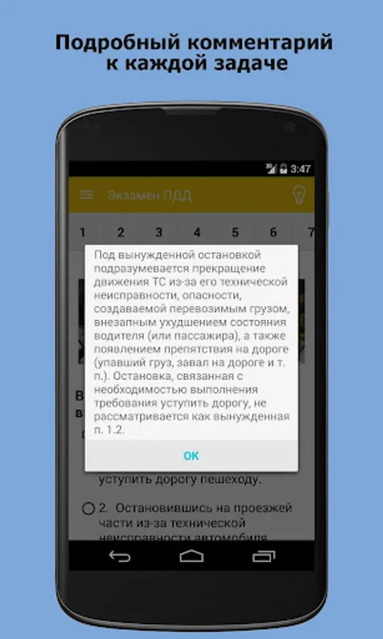 Application "on exam SDA traffic tickets - RF 2018 Thematic Tickets Examination tickets" available on all mobile devices - Android, iOs, Phone.