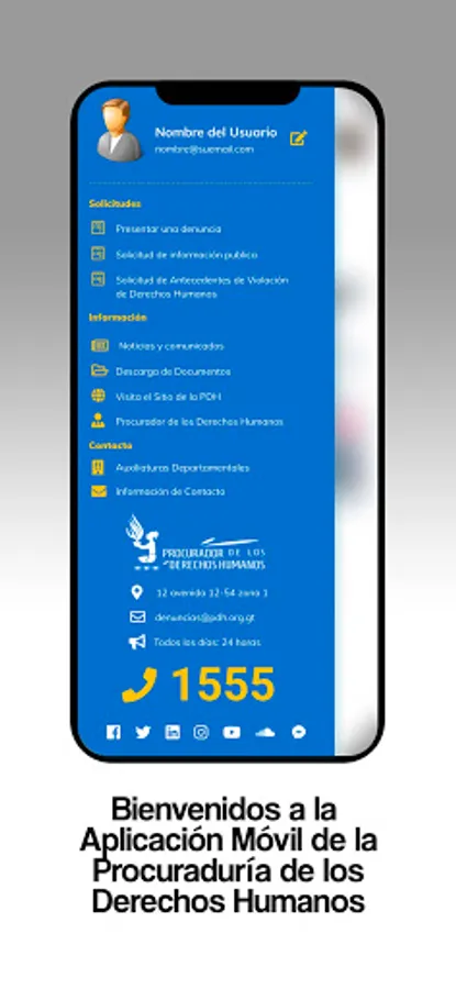In compliance with the constitutional mandate of the PDH, with the support of OXFAM and PROPAZ, the PDH seeks to create new mechanisms for receiving and monitoring ICT complaints and for them to be implemented at the institutional level. For the above, a mobile application has been developed with which you can carry out the following procedures from your cell phone: