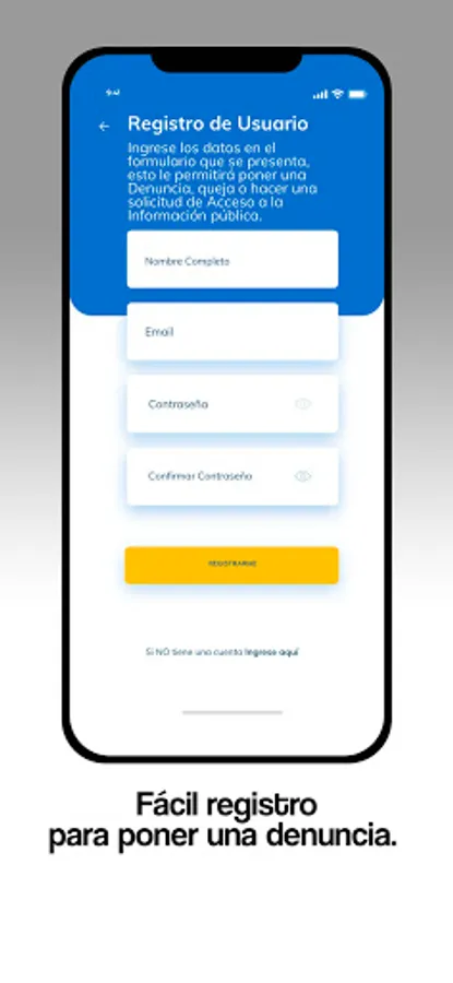 In order to make complaints or request proof of lack of responsibility, you will need to be a registered user. To register simply fill in the registration fields in the app: name, email and password.