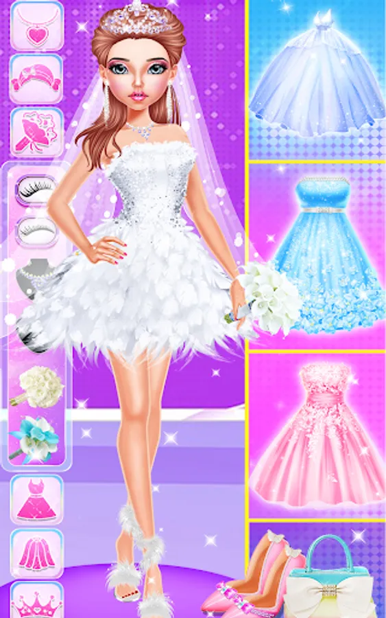 Wedding dress up game Explore the unique wedding dresses gown and hundreds of best fashion wedding Hairstyles with girls wedding dress up style games. Play fashion stylist with different bride characters and get ready to give them a fashion makeover with this unique dress up and makeup game based on a wedding theme.
