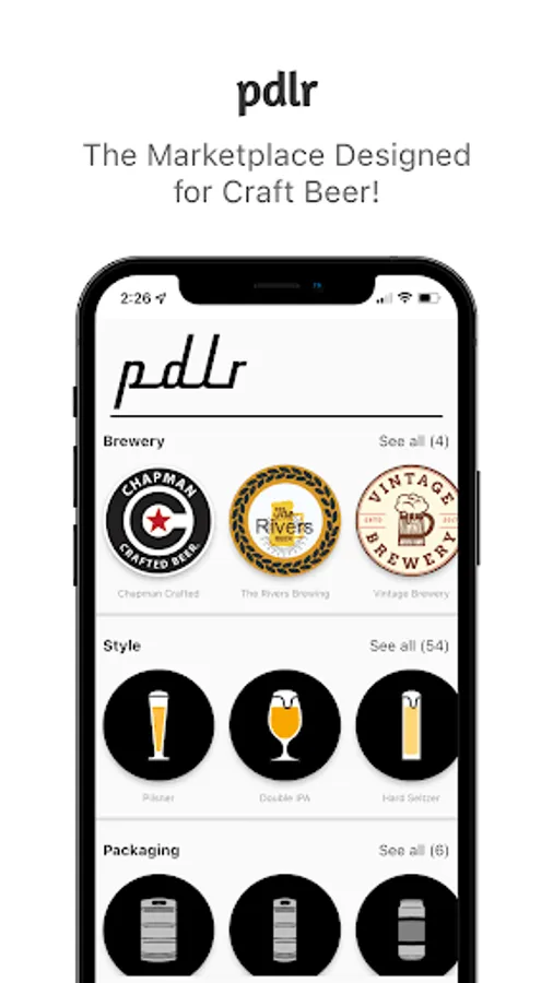 The marketplace designed for craft beer. pdlr is helping craft beer breweries and distributors empower their customers through a simplified mobile ordering platform. Breweries upload their available products and inventory into the marketplace to be viewed and ordered through the app.