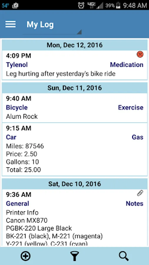 NOTE: A number of users have given 1 star related to log categories. My Logs comes with predefined log categories to get you going. There is no limit to what you can log. If you do not see a category that fits your needs, you can rename existing categories or create new ones.