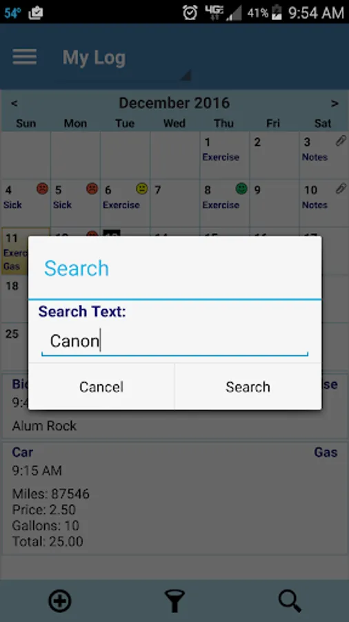 * No Internet Permissions, your private data is safe with you. Beware of other log apps that can access your log entries without your knowledge.