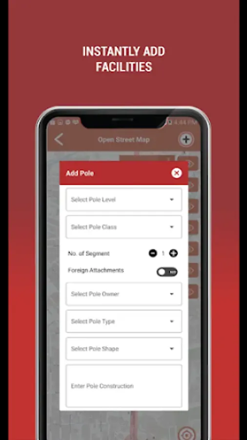 Pole - pole id, pole name, measurement, pole height, pole class, no of segment, foreign attachment, pole owner, pole type, pole usage, voltage, remarks, pole status, pole shape, image orientation, 4 images, and pole construction.