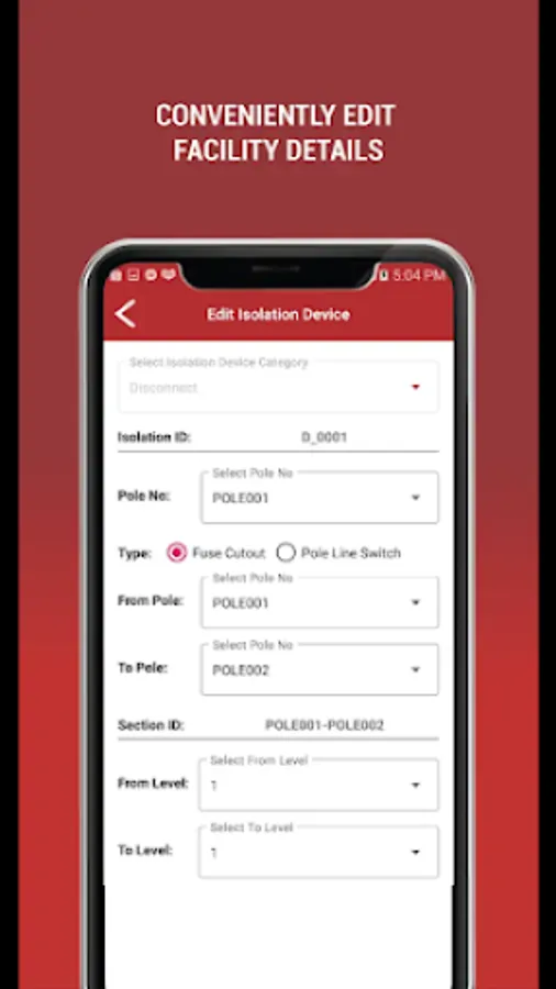 EnerGISuite Survey is a survey mobile application use for gathering information and location (coordinates) of Electric Facilities - pole, primary line, load center, secondary line, capacitor, avr, and isolation devices. It is designed to help users to easily facilitate the acquisition of data information.