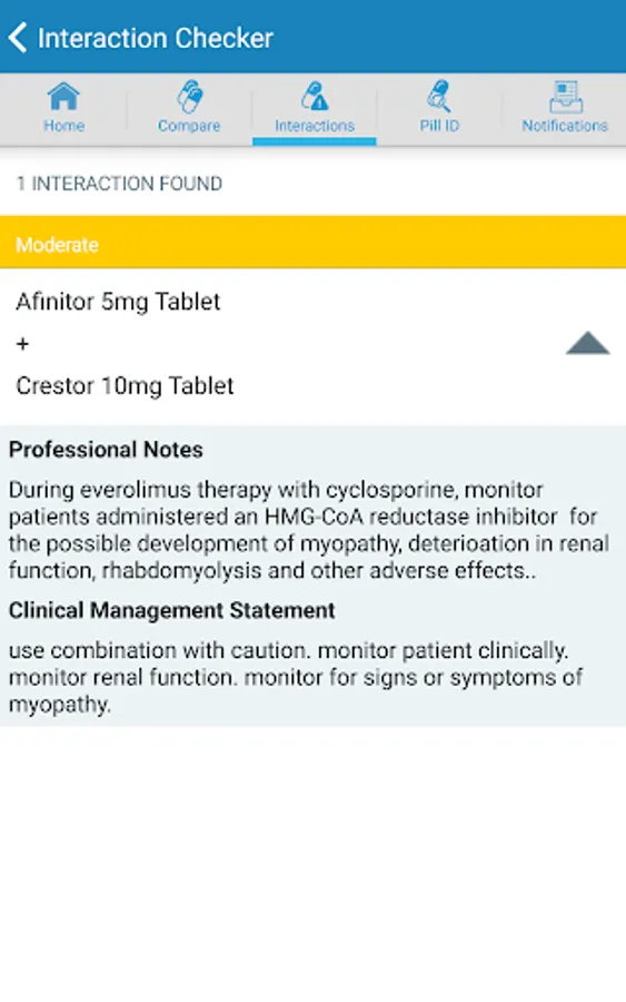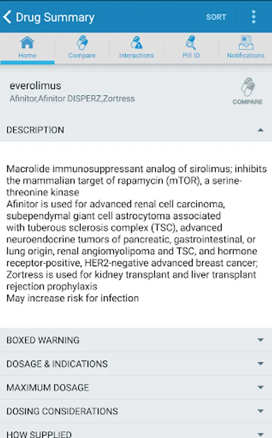 - Swipe left-right to compare key drug characteristics such as dosing, indications, and side effects