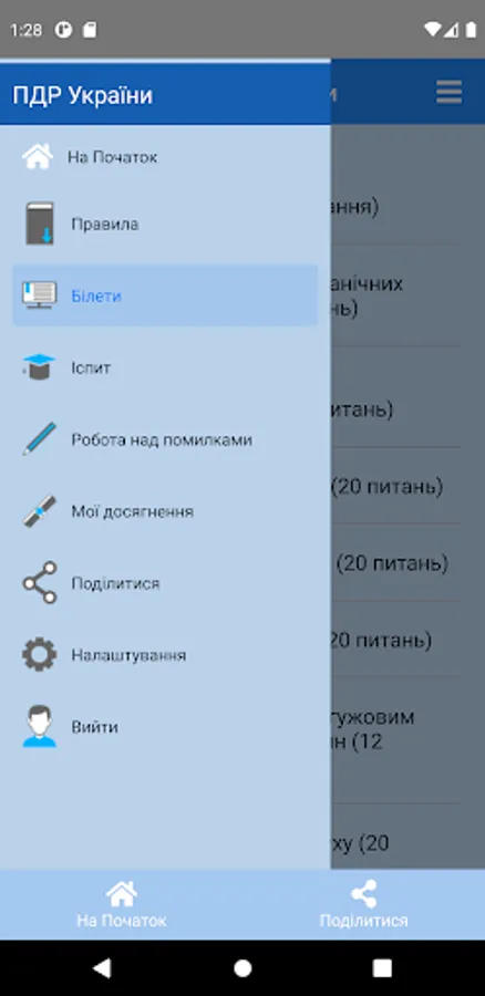 Traffic rules of Ukraine. It is very easy to prepare for the driver's license exam! Take tickets and exams and gain knowledge of the traffic rules of Ukraine