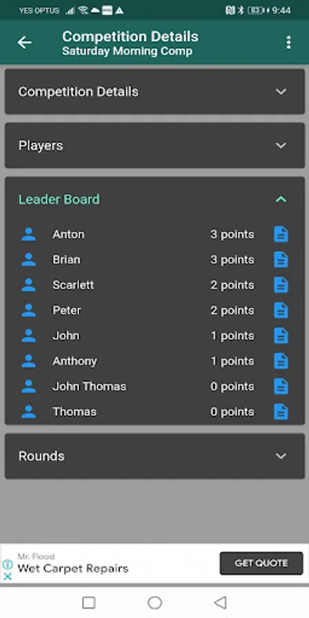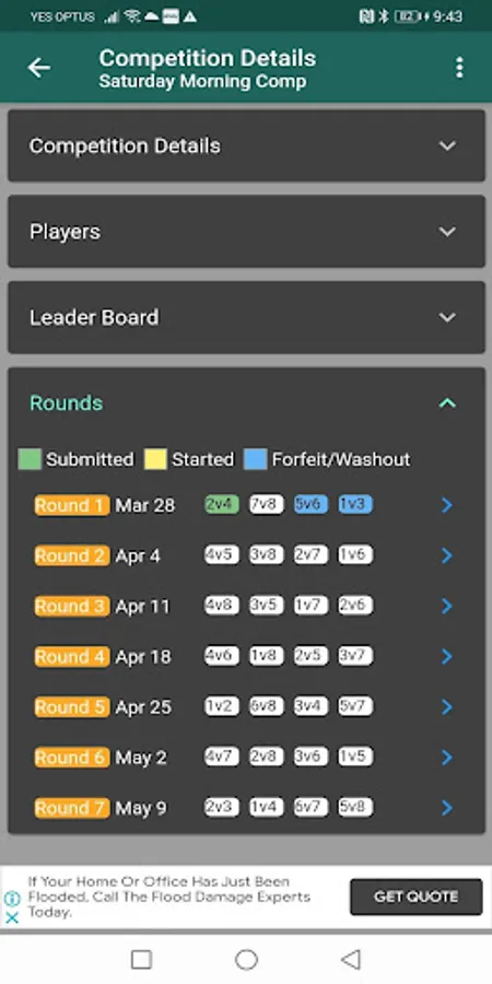 Create club or school competitions based on a number of players or teams, for a given number of rounds. Users are then able to use their phones to score and view the matches in real time.