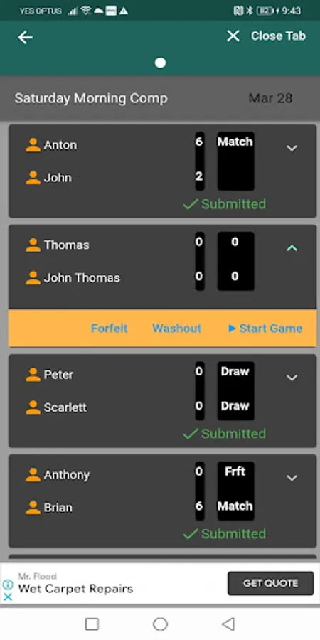 Preconfigured Tennis sports type can be selected when creating a sports club. Multiple clubs of different sports types are supported. Group messages can be sent to participants in a competition keeping everyone informed. Leader board keeps everyone up to date with the latest match results. Score history can be viewed during and after games are played. Players or teams can be removed and added to competitions even after the competition has started.