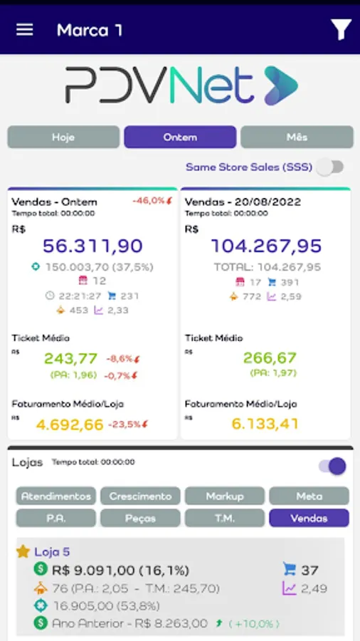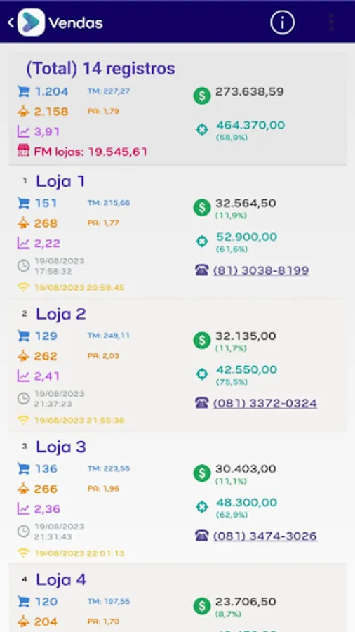 - Monitoring of sales of stores with different totals;