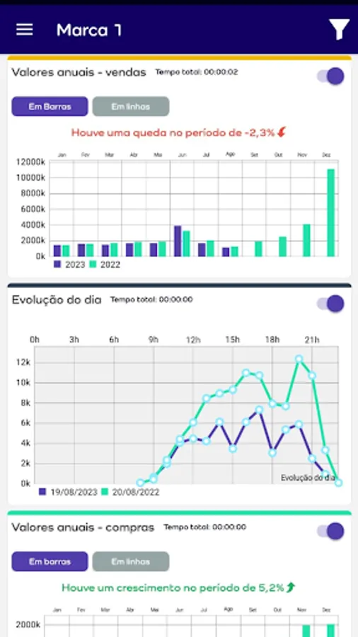 - Month closing charts, daily closing and daily progress.