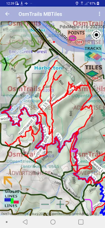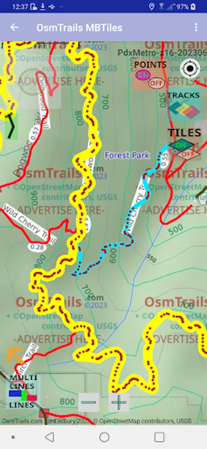 Lite version of OSMTrails app is intended as a companion for smaller MBTiles maps made for some limited area and made available by someone else. The Forest Park map and Multnomah Falls map are examples.