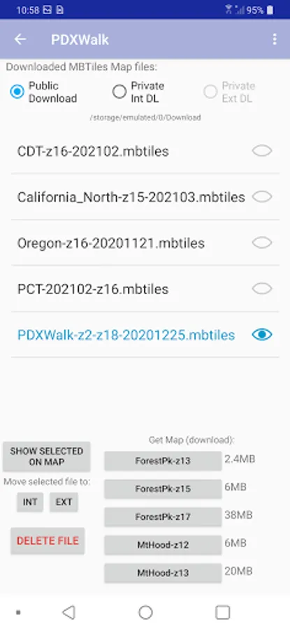 GPS Tracking and Offline Maps, Can import MBTiles raster map that you select in your Download folder. Also includes what I call Profiles files that are path and bicycle tagged extracts from OpenStreetMap data that can be displayed on MAP.