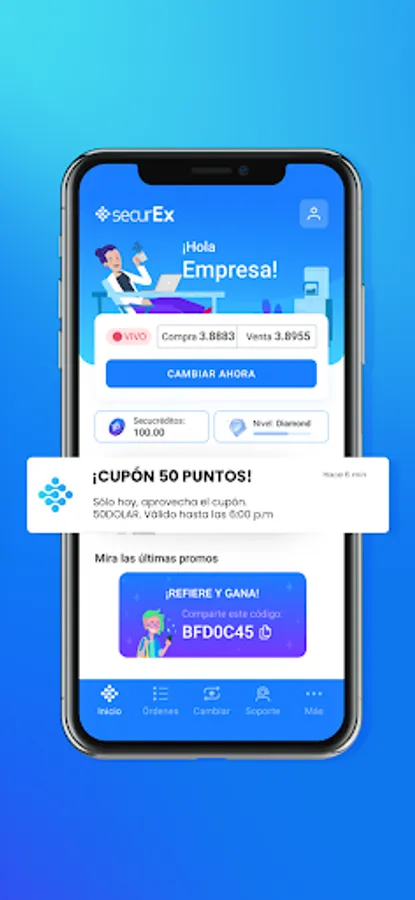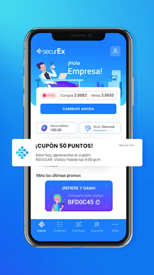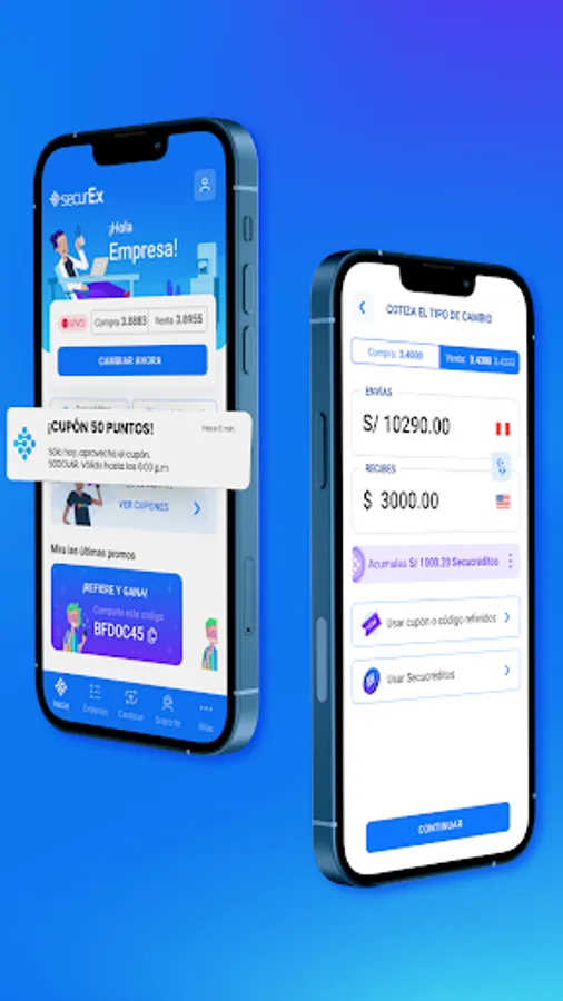 In the Securex app you will have promotions every day through discount coupons for your exchange of dollars or soles.