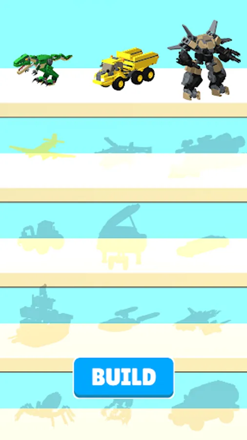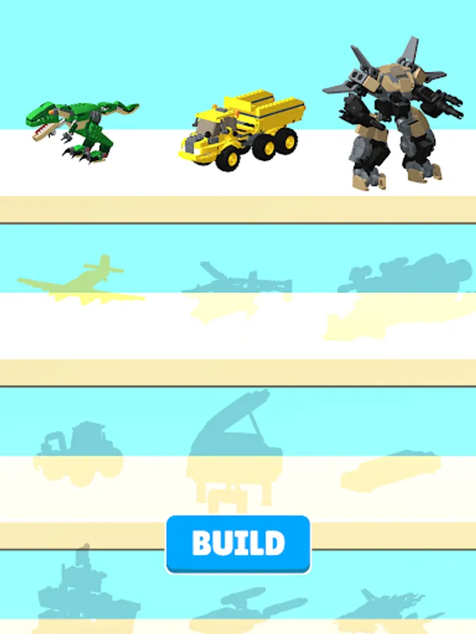 Your collection will feature a variety of models, including toy planes, trucks, mechs, and famous buildings like the Eiffel Tower and Dutch windmills. As you progress through the levels, the objects you create will become increasingly intricate and detailed.