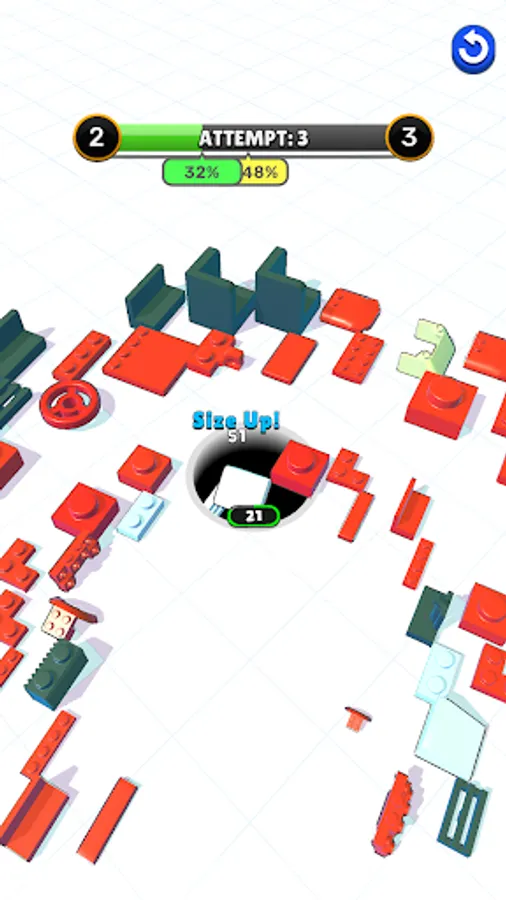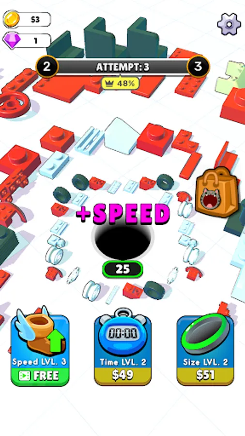 With the money you earn from gathering bricks, you can invest in exciting upgrades before starting a new round. Increase the hole size, enhance its movement speed, or even extend the timer, giving you more time to collect bricks and complete levels.