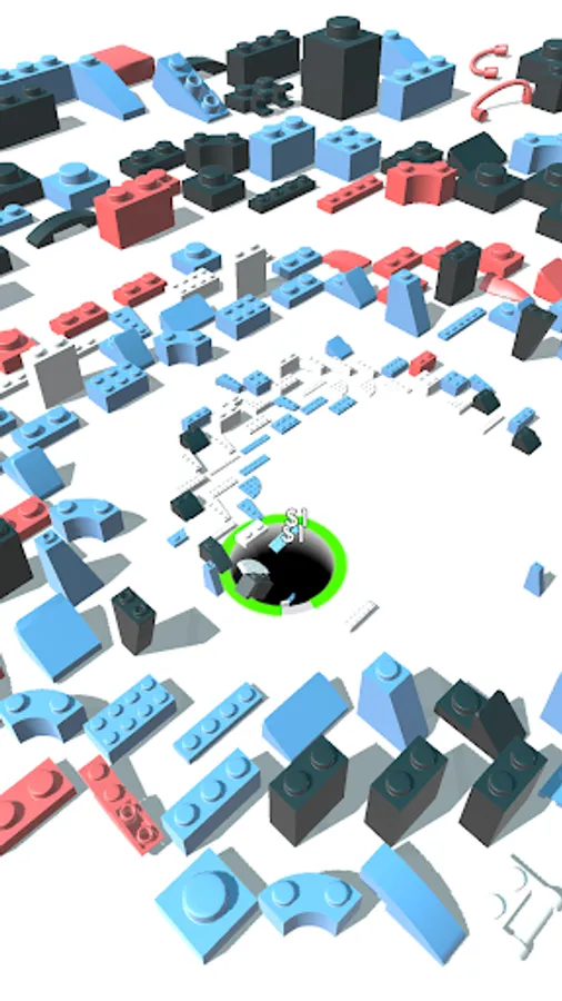 Welcome to the captivating world of Block Hole, a casual arcade-style game where you'll navigate a hole on the ground to collect brick pieces and assemble exciting new models! The goal of each level is to gather all of the bricks required to create a unique object, which then becomes part of your ever-growing collection.