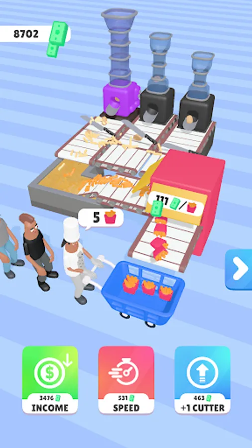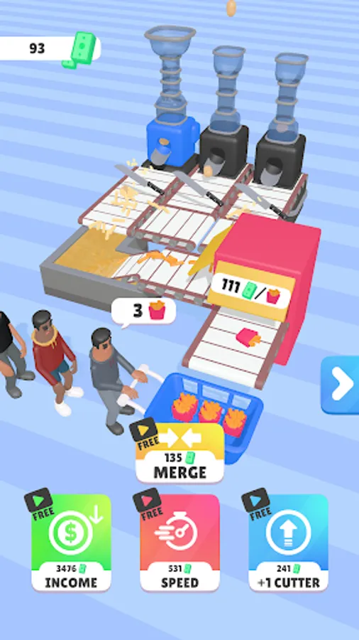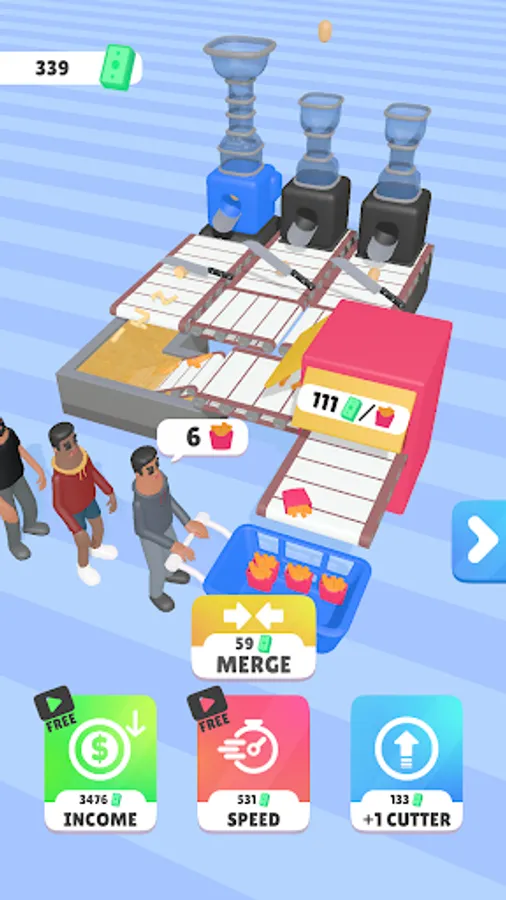 Fusion is the name of the game! Merge your ingredient cutters when they're at the same level to create even more efficient and speedy production lines. The more you merge, the more you earn!