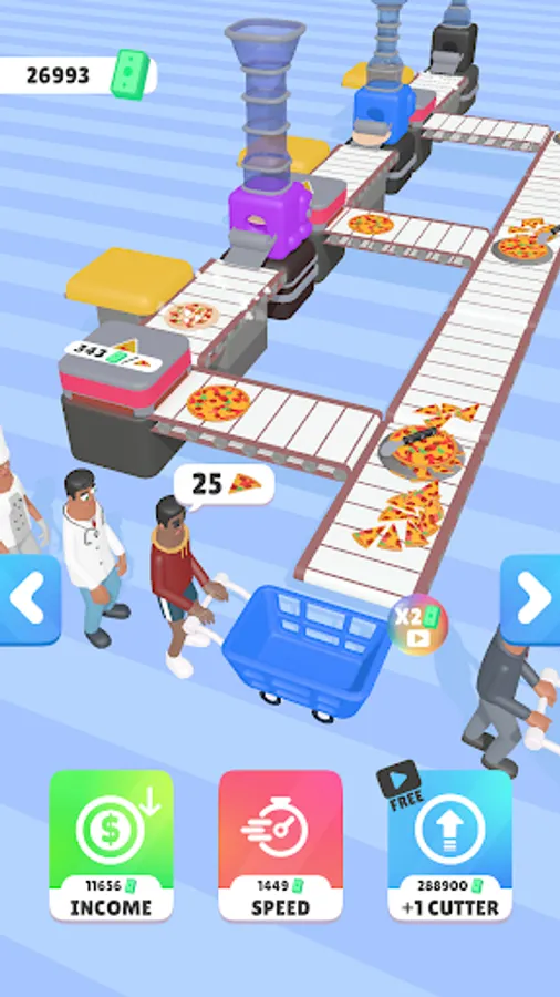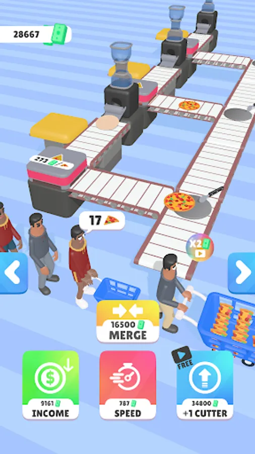🍕 Upgrade your equipment, speed up your conveyor belts, and merge your cutting machines