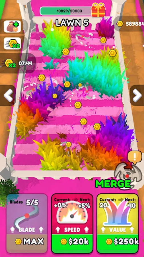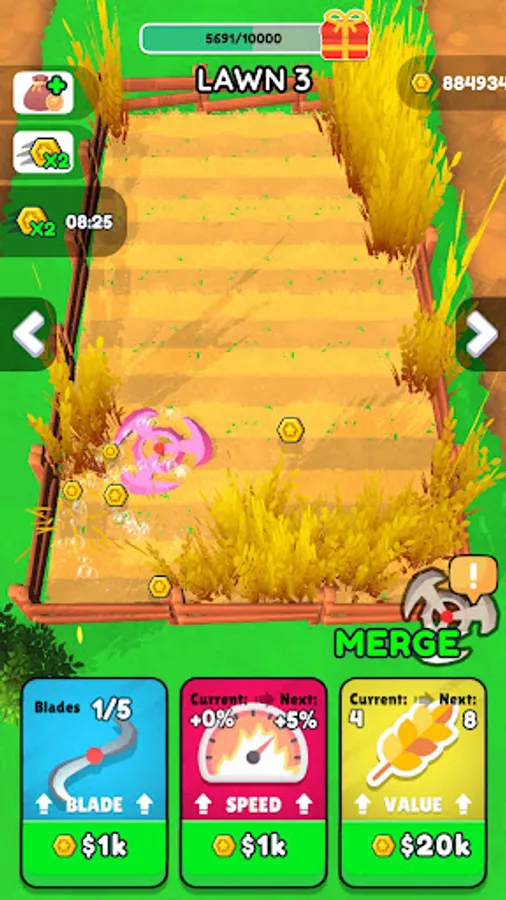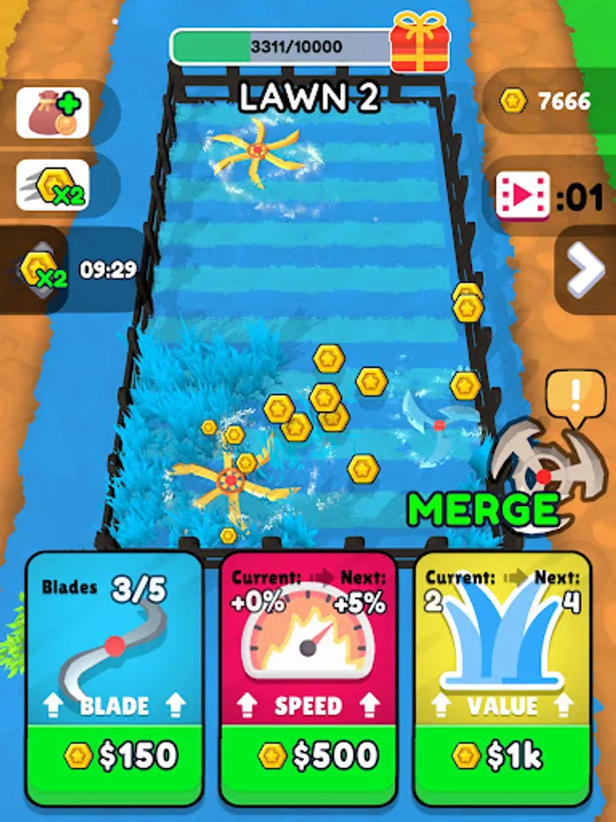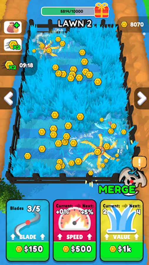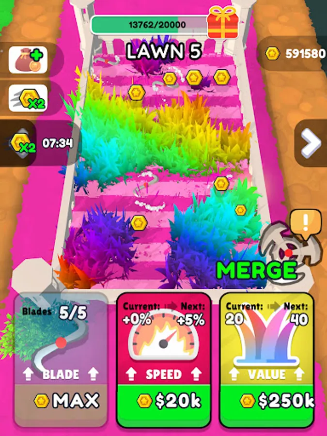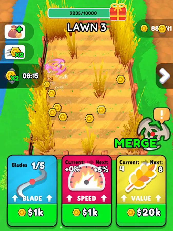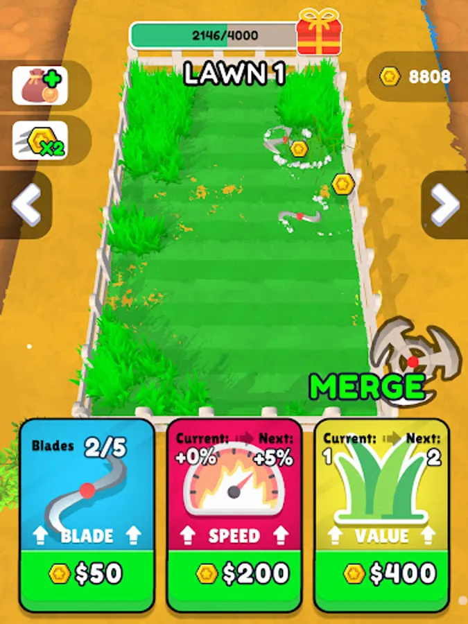 Watch these spinning blades sheer through waves of grass as you upgrade and merge to create bigger and faster spinning blades. Progress through to new and exciting lawns and become the ultimate mowing merge master.