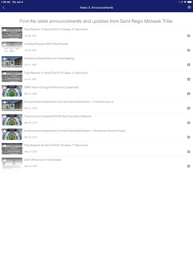 The Saint Regis Mohawk Tribe is releasing an app. The app's audience is individuals that want to support, learn more about, or participate in the association. The app's purpose is to promote the association's mission in promoting the well-being of American Indian children, their families, and their tribes. The app carries out its mission by publishing association news, promoting association events, distributing resources, linking to their social media platforms, and directing users to ways they can contribute to the association.