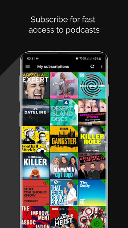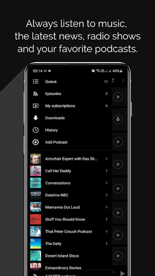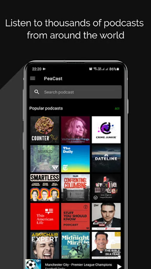 PeaCast is a simple, free podcast player where you can always find something to listen to.