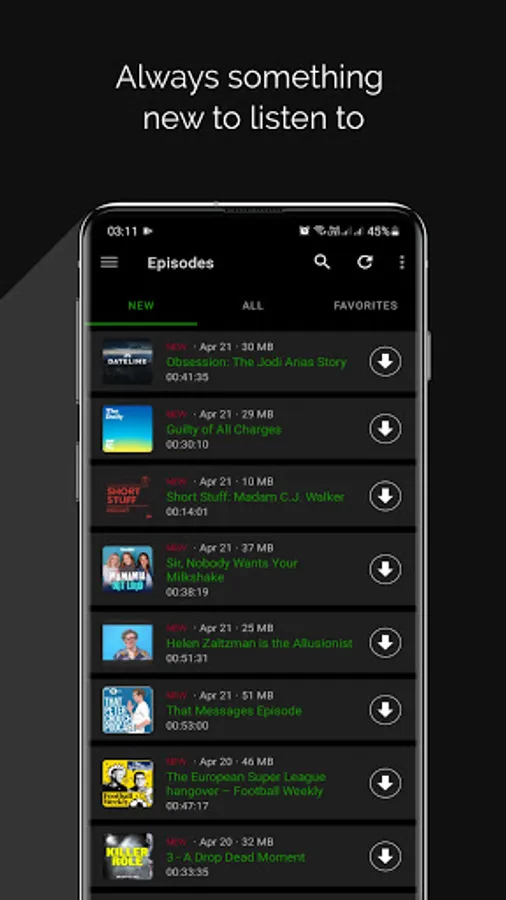 Download and listen to your favorite podcasts offline whenever you want, wherever you are. Listen to podcasts on English as well as Russian, French, Portuguese, Spanish, Japanese, and other languages.