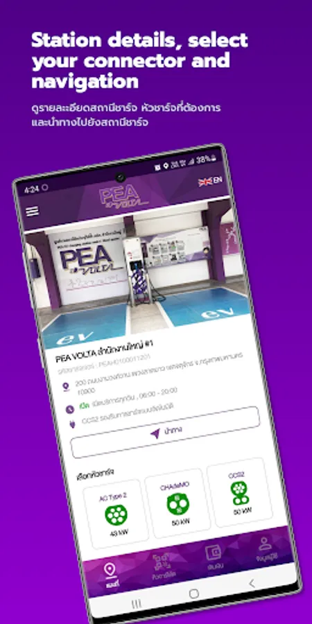 1. Help find a station for charging electric vehicles. Within the network of the Provincial Electricity Authority